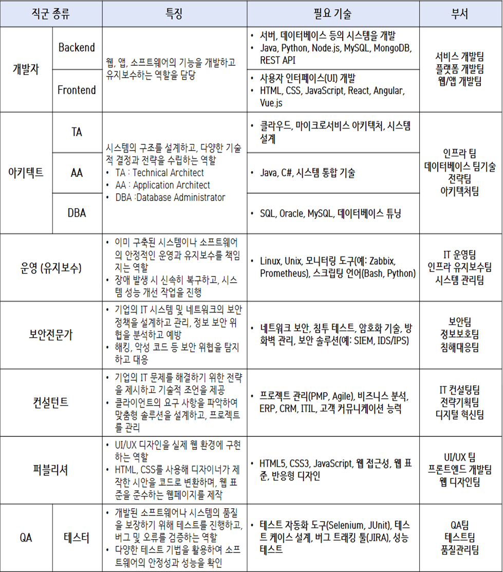 👉 이처럼 다양한 직무가 모여야 하나의 IT 서비스나 시스템이 완성됩니다.